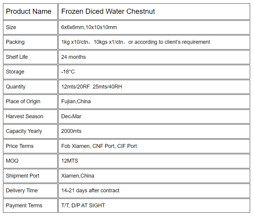 Frozen diced water chestnut